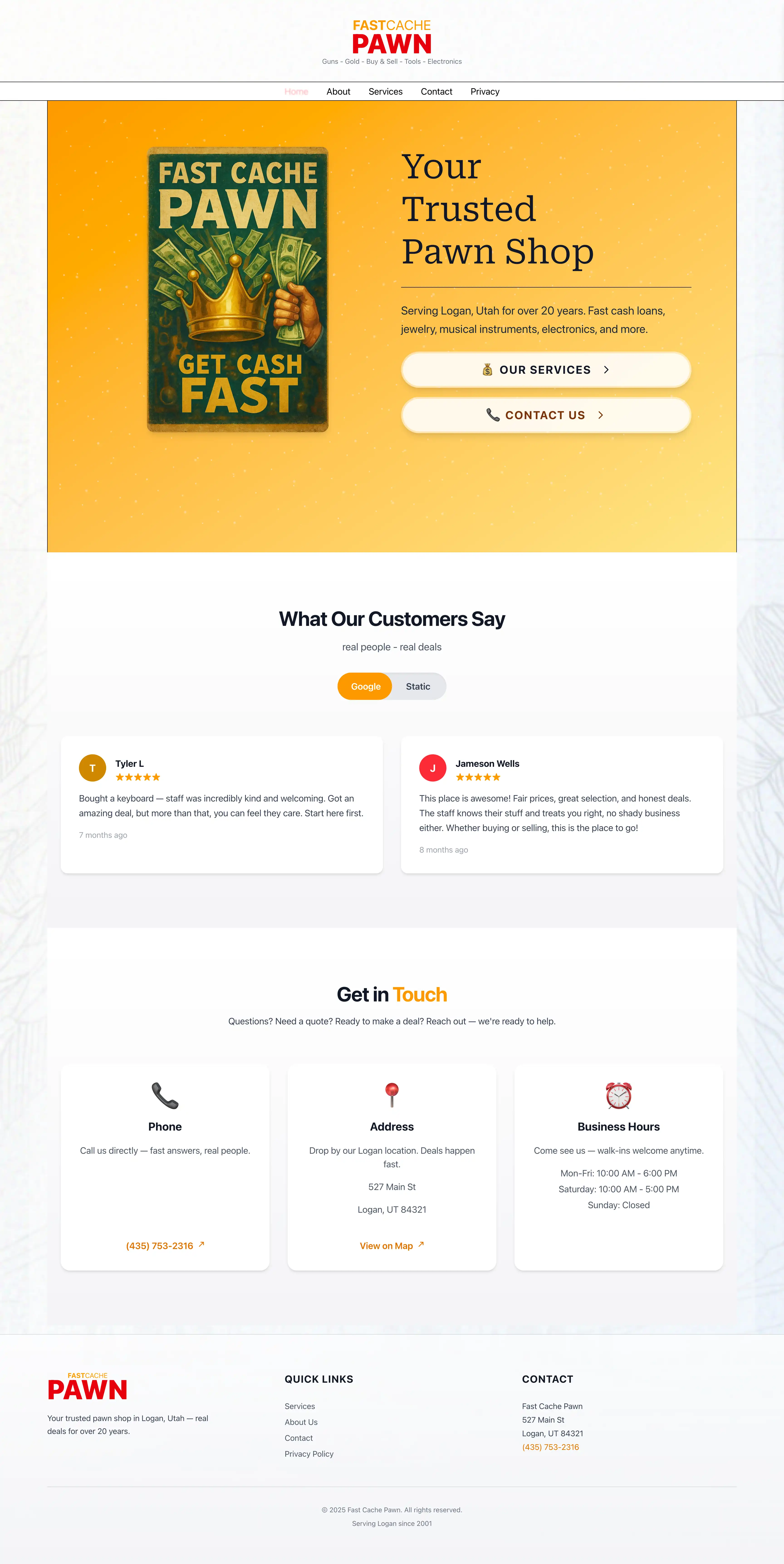 Fast Cache Pawn — a modern landing page for a local pawn shop.